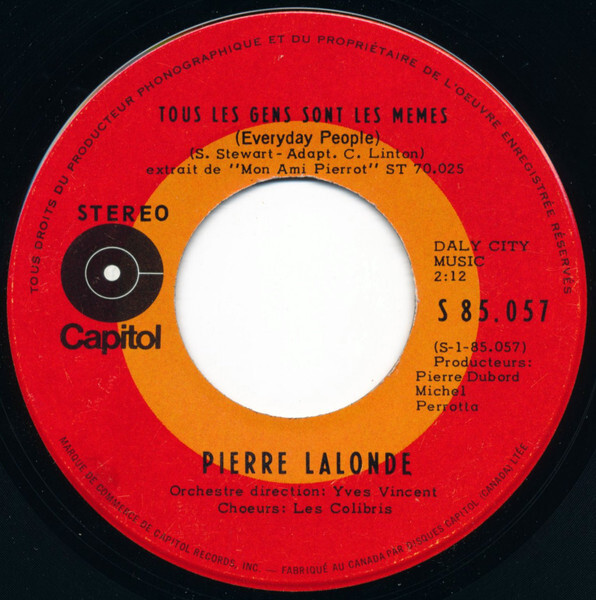 Tous Les Gens Sont Les Mêmes (Everyday People) b/w T'es Pas Une Autre (Until It's Time For You To Go)