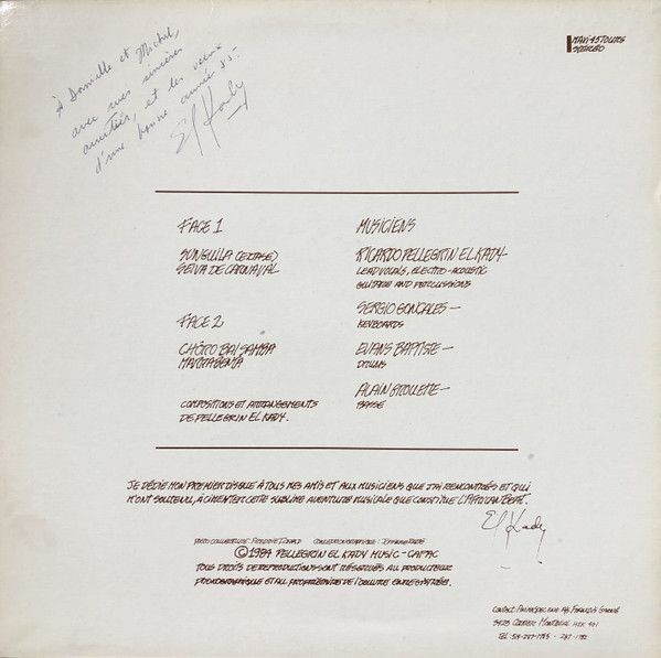 Pellegrin El Kady is a unique musician who was born in the Bijagos Islands of Guinea-Bissau and lived in Cape Verde, Mozambique, Angola, Portugal before moving to Quebec in the mid 70's. After completing graduate school there, he worked as an educator and at the same time devoted much of his time to ethnic music therapy.