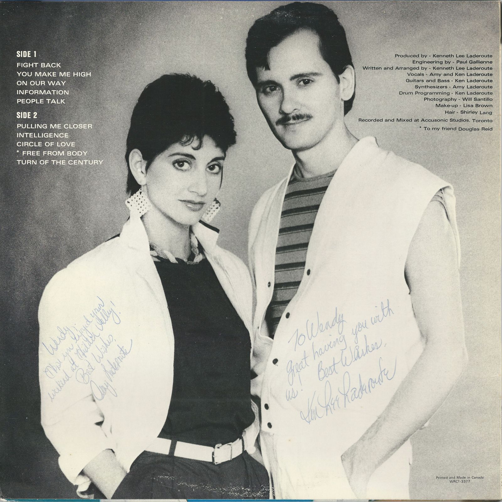 Ken and Amy Laderoute were more than just musical collaborators—they were (and still are) partners in life and art. The husband-and-wife duo recorded their sole album in 1983, a self-produced, synth-driven reflection of love, unity, and the early ’80s DIY spirit. Released privately in Canada under the group name Oui, the record quietly captured a moment in time, blending romantic optimism with sleek electronic textures and heartfelt songwriting.
