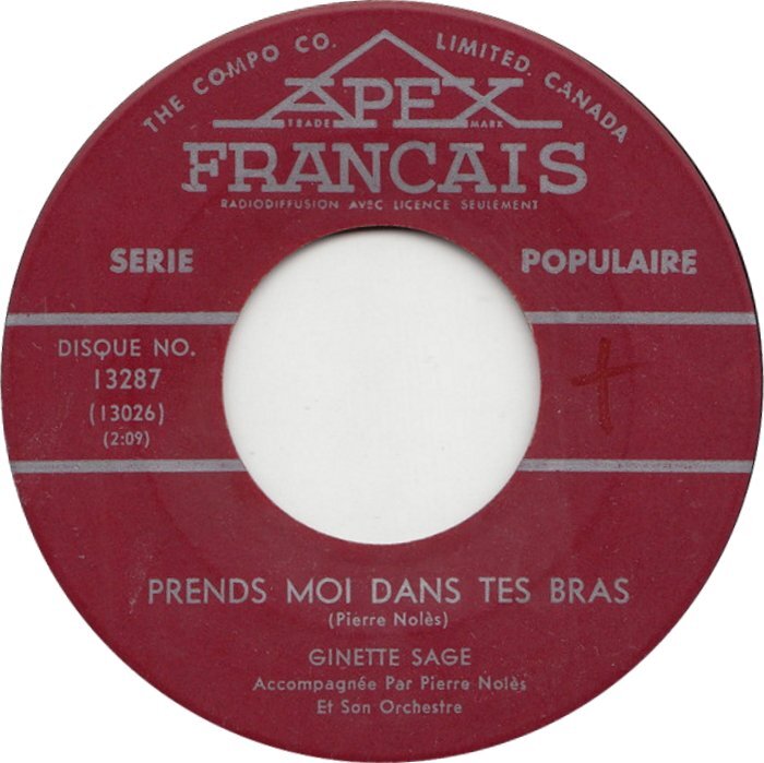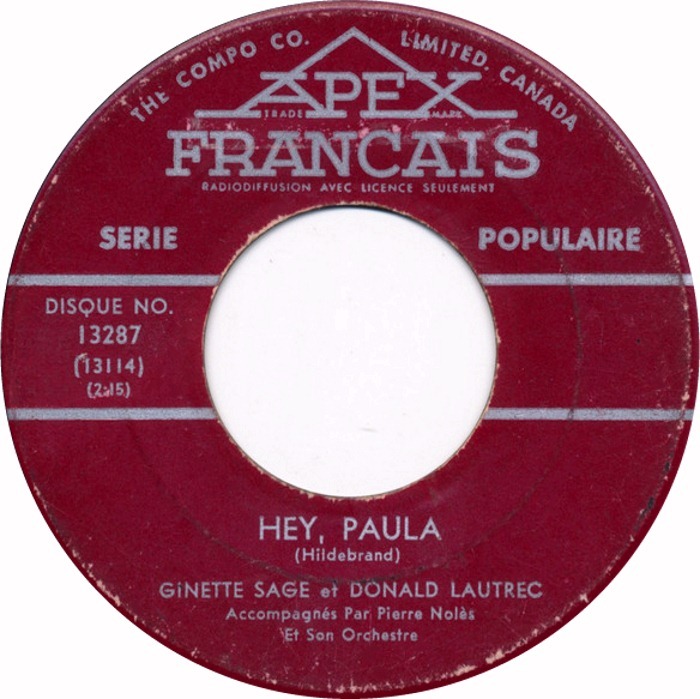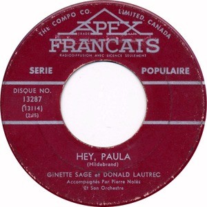 Ginette Sage Prends Moi Dans Tes Bras b/w Hey Paula Ginette Sage et Donald Lautrec