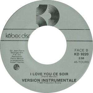 I Love You Ce Soir b/w (no artist listed) I Love You Ce Soir (Version Instrumentale)