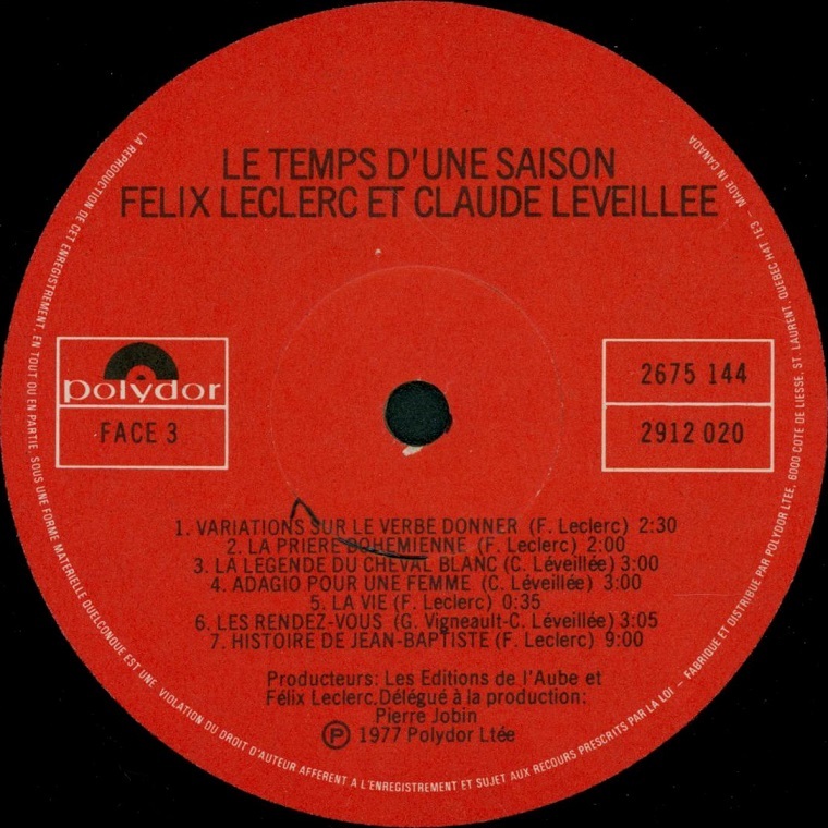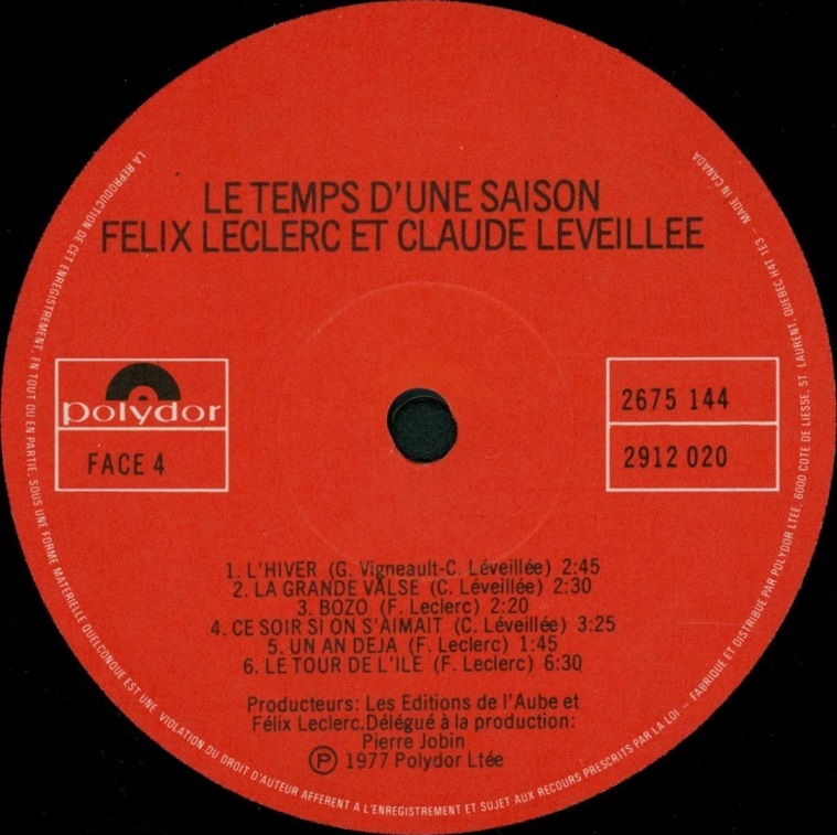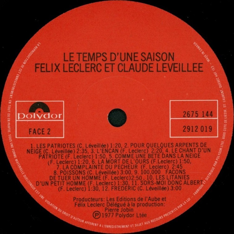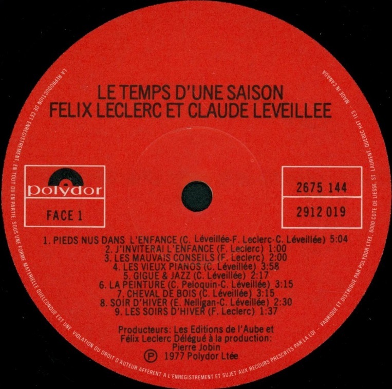 Le temps d'une saison (et Félix Leclerc) (2 LP)