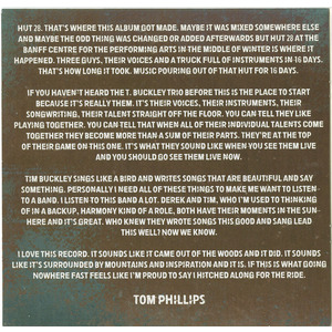 If you haven’t heard the T. Buckley Trio before, this is the place to start because it’s really them. It’s their voices, their instruments, their songwriting, their talent straight off the floor. You can tell they like playing together. You can tell that when all of their individual talents come together, they become more than the sum of their parts. They’re at the top of their game on this one. It’s what they sound like when you see them live—and you should go see them live now.