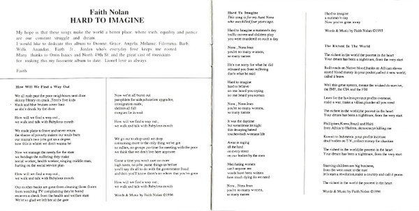 Faith Nolan: lead vocals, acoustic guitar (lead/rhythm), harmonica, tambourine