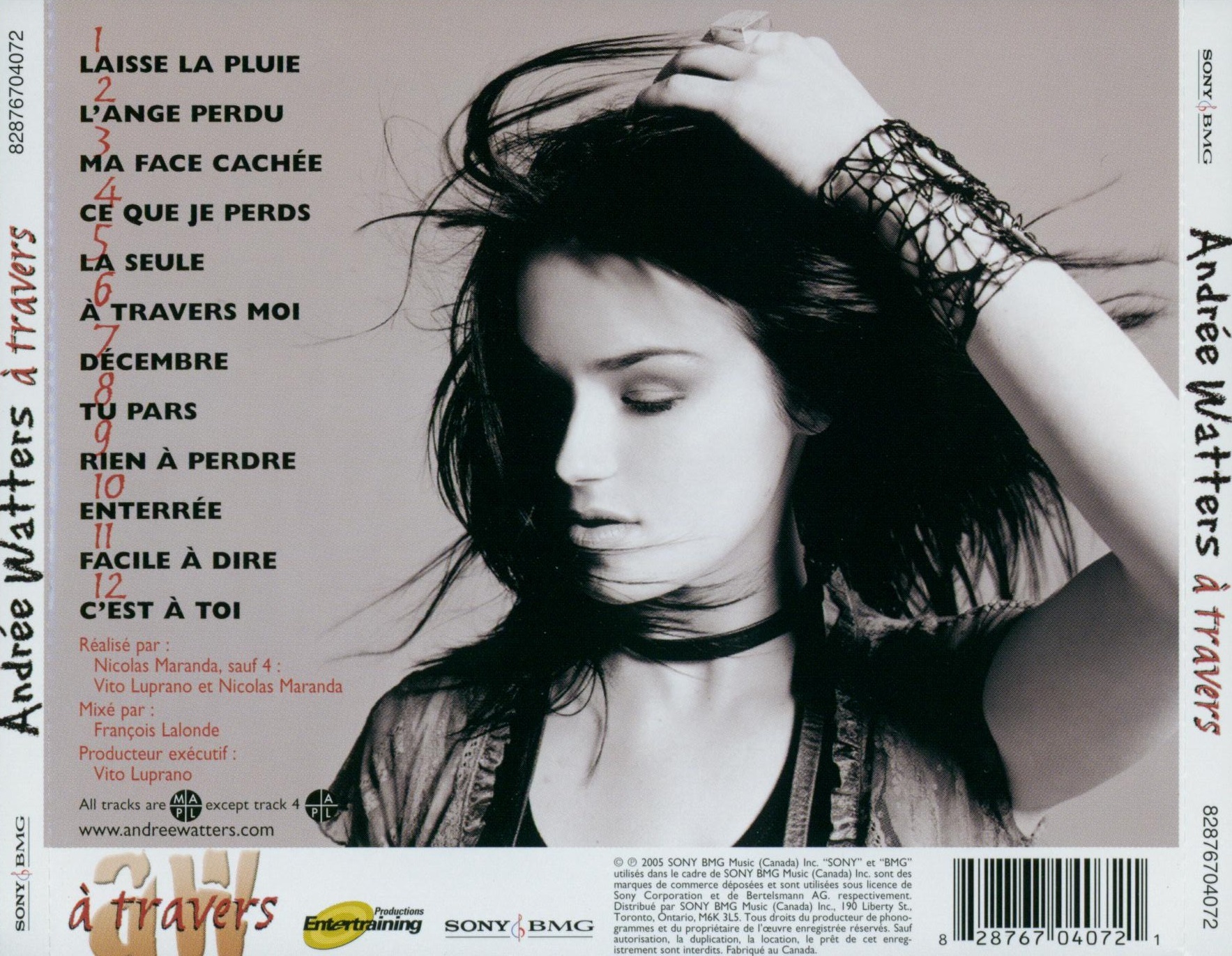 à travers CD case back cover