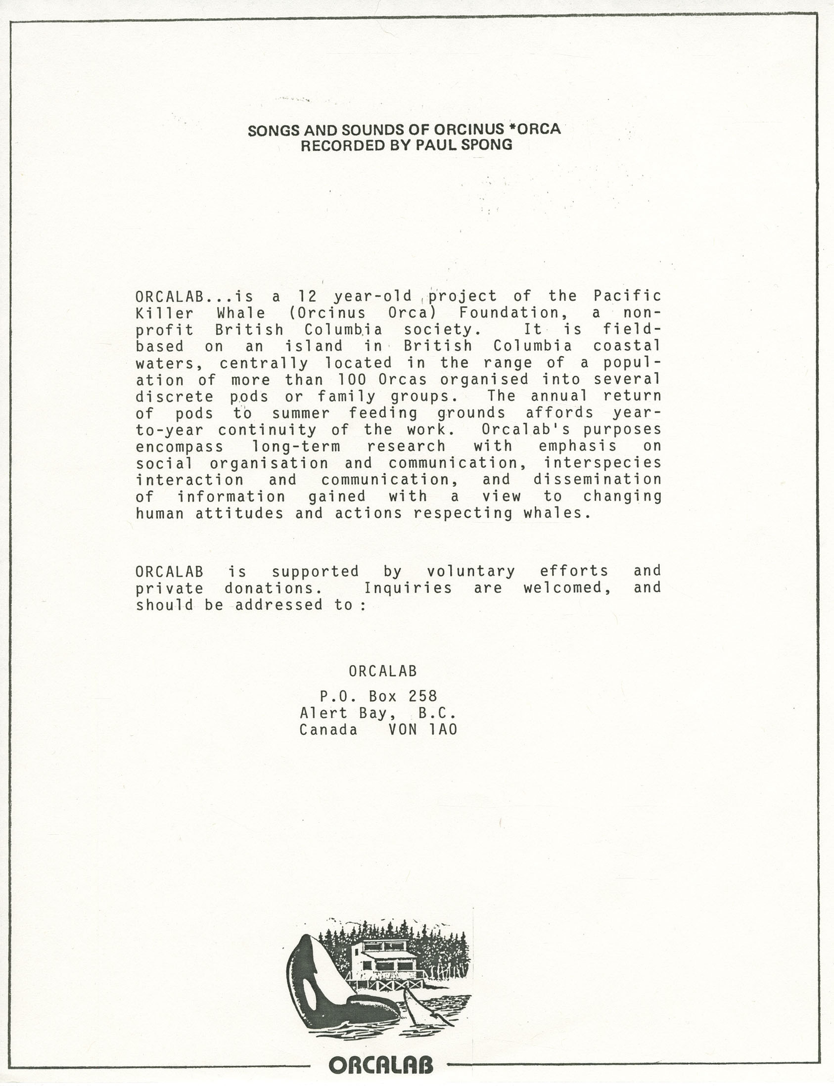 Paul Spong - Songs and Sounds of Orca LABEL 02
